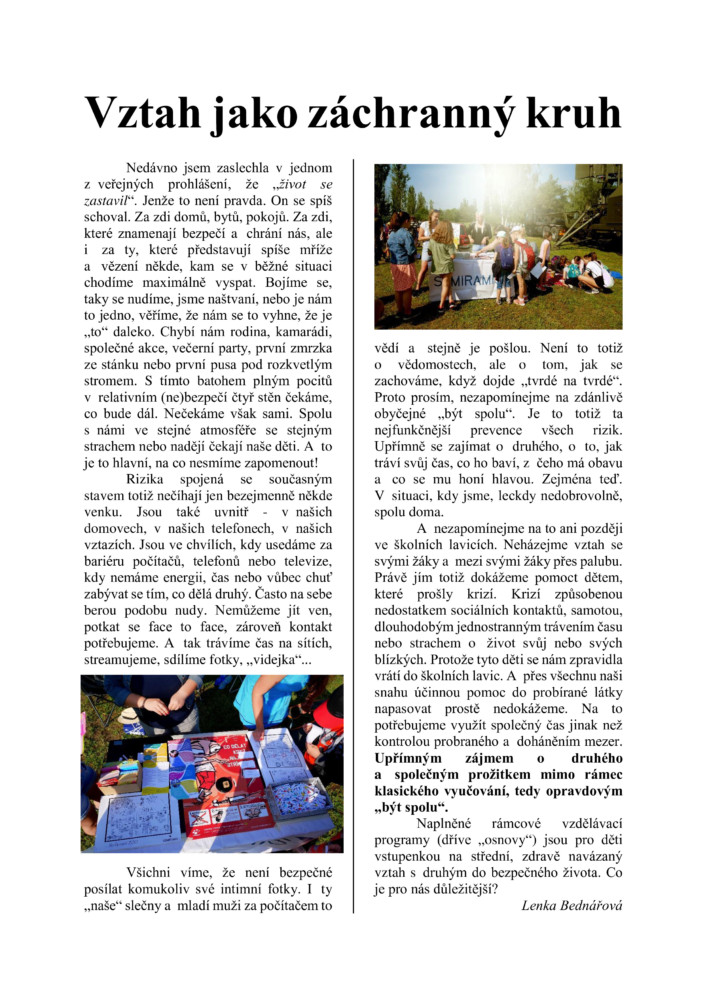 2. Metodika pro učitele po návratu dětí do škol (podrobná verze s konkrétními tipy, kterou vypracovaly Tereza Berková a Sylvie Stretti, obě nyní působící v organizaci Vigvam).