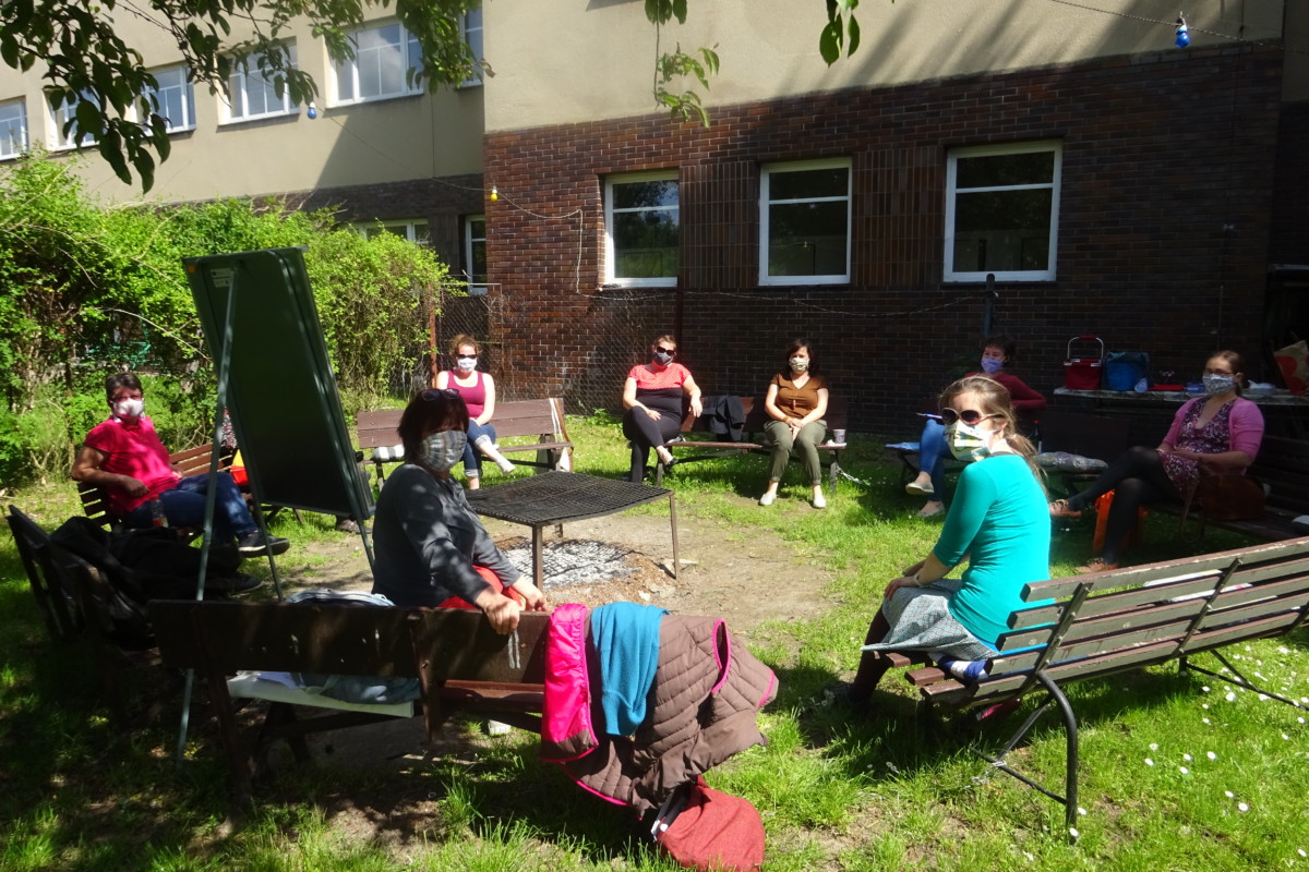 Bezprostředně hned, jak bylo možné se začít scházet, jsme využily příležitosti a oslovily naše místní lídry a vedoucí pracovních skupin, zda by si našly (jde o samé dámy) prostor ke společnému setkání. Bylo na výběr, ale nenašel se nikdo, kdo by stál o online setkání – ta se stala za poslední měsíce každodenním chlebem všech učitelů. Došlo tedy na osobní setkání, a sice v úterý 19. května 2020 na venkovním prostoru za ZŠ Studentská. Původně dvouhodinové setkání se nakonec protáhlo do tří hodin, taková byla radost z osobního kontaktu s ostatními kolegy.